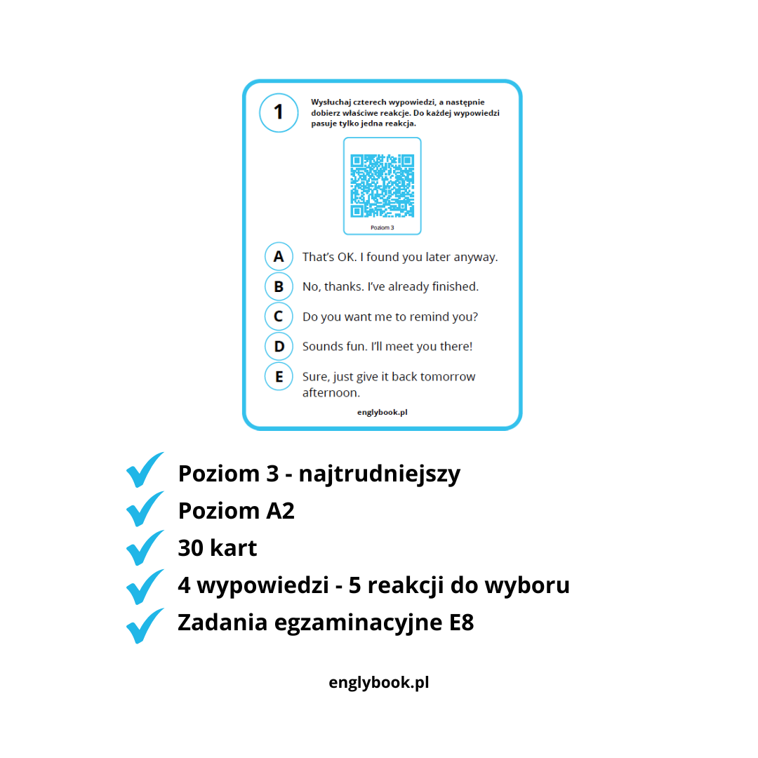 GRATIS 1: 45 kart na 3 poziomach trudności (ćwiczenia dostępne również na platformie Engly.pl)